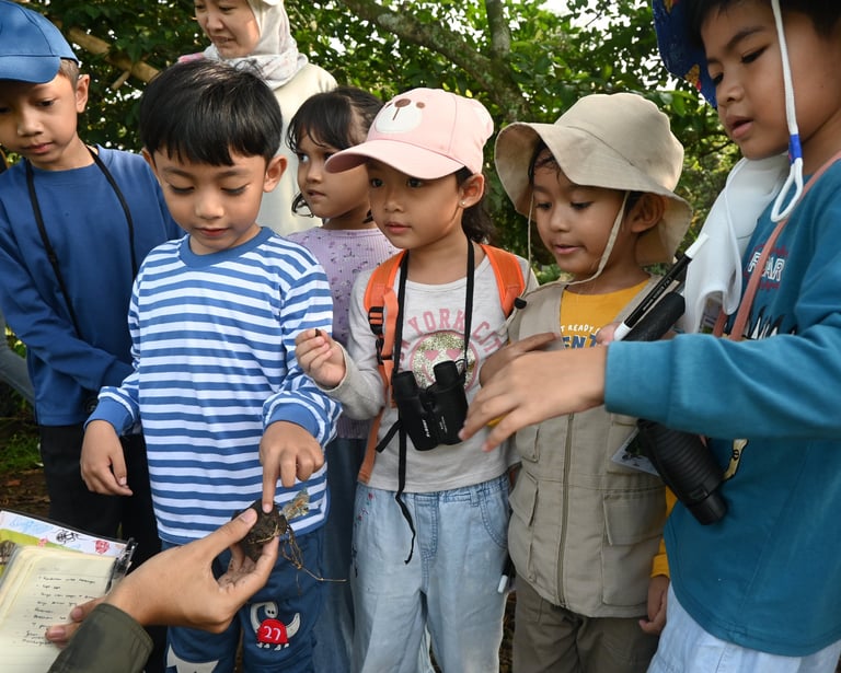 Jelajahi flora dan fauna lokal bersama edukator berpengalaman. Kegiatan praktis dan menyenangkan untuk menumbuhkan rasa ingin tahu, keterampilan observasi, dan kepedulian lingkungan.